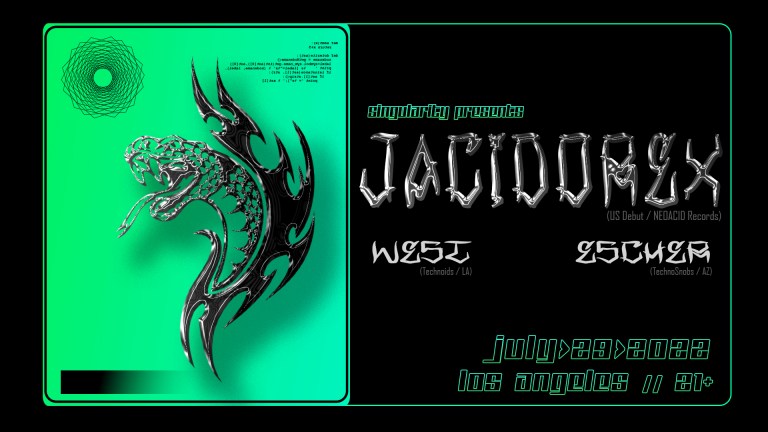 Catch Jacidorex along side Arizona’s ESCHER, and LA’s very own WEST on July 29th right here in LA.